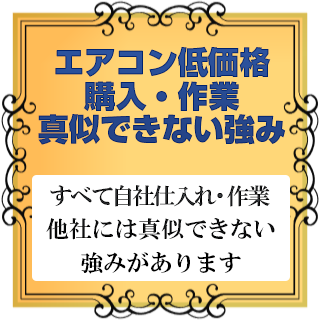 エアコンの購入価格や、作業費用を低価格で抑え、品質の高いサービスを提供しています。すべて自社仕入れ&自社スタッフの専門作業による提供のため、フットワークが軽く、他社には容易に真似できない強みになっています。